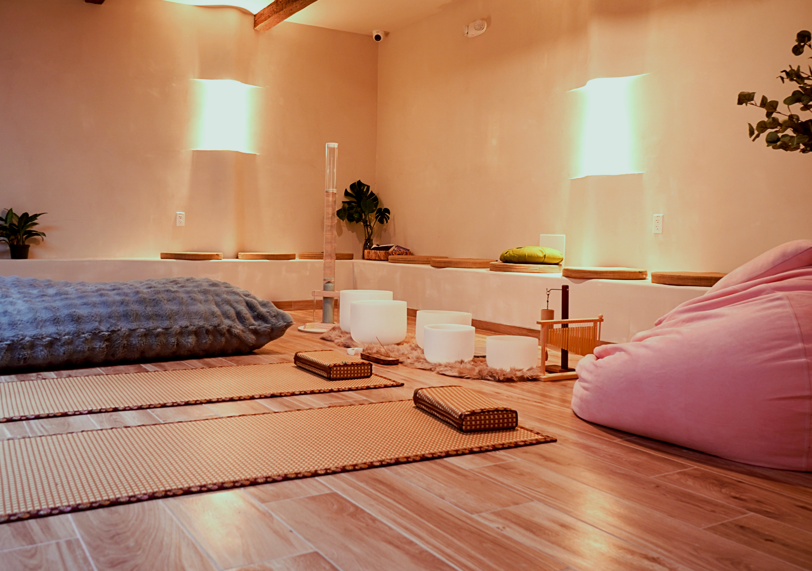 Nervous system resets, sound healing, mindfulness, yoga flow, and mini sessions that support well-being and community.